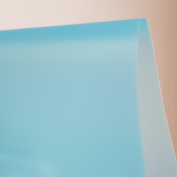 Folia PCW półprzezroczysta, niebieska o grubości 200 mikr. dostępna w arkuszach o wymiarach 560x1000mm.